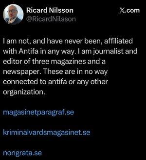Páni. Švédský masový vrah jménem Ricard Nilsson se po propuštění z vězení stal levicovým novinářem. Odseděl si méně než 20 let za to, že při přepadení zabil tři cizince. Byl viděn na protestu krajně levice ve Stockholmu 30. listopadu.