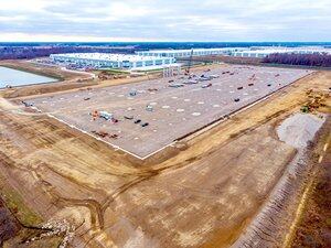 @anduriltech interior office and production line construction continues apace on Building 1 (note the busy parking lot in the adjacent building)