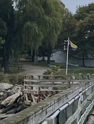 INBOX. Enorme bandera de monumento infantil en el Parque Nacional de las Islas del Puerto de Boston