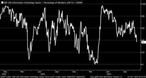 Descendu à 37 % des membres technologiques du S&P 500 négociant au-dessus de leur moyenne mobile sur 50 jours... le plus bas depuis avril