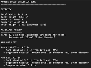 Téléchargez la spécification de construction pour obtenir la liste exacte des matériaux pour les bras, les poids, les fils, etc.