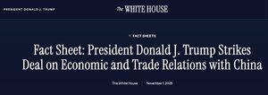 - Amerika Serikat akan menurunkan tarif impor China yang dikenakan untuk mengekang aliran fentanil dengan menghapus 10 poin persentase dari tingkat kumulatif, efektif 10 November 2025, dan akan mempertahankan penangguhan tarif timbal balik yang lebih tinggi pada impor China hingga 10 November 2026. (Tarif timbal balik 10% saat ini akan tetap berlaku selama periode penangguhan ini.)