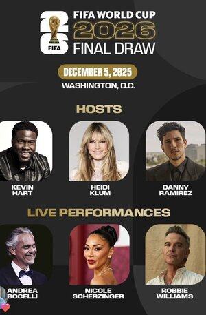 Kami akan menjadi tuan rumah siaran global FIFA Draw di seluruh dunia yang menampilkan Eli Manning, Tom Brady, Heidi Klum, Kevin Hart, Andrea Bocelli, Nicole Scherzinger, Wayne Gretzky, Robbie Williams, dan Shaquille O'Neal....