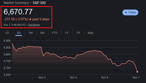 Attualmente, l'S&P 500 è destinato a scendere del -3% questa settimana.