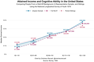 Dit geldt voor mensen uit uitstekende familieachtergronden (Utopian Sample) en bij het vergelijken van broers en zussen uit dezelfde gezinnen!