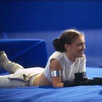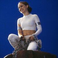 Natalie Portman op de set van 'Star Wars: Attack of the Clones' in 2001.