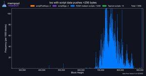Ik neem aan dat dit alleen van toepassing is op *uitgevoerde* data pushes, dus ik heb pushes binnen taproot inscriptie-enveloppen uitgesloten, waarvan er heel veel zijn.