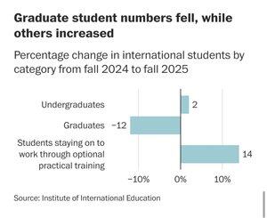 Uma queda de 12% em estudantes internacionais de pós-graduação nos EUA é um monte de cientistas e engenheiros talentosos decidindo ir para outro lugar.