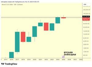 A história sugere que o preço deve ser capaz de terminar 2025 com uma vela verde, fechando acima de $93k, antes de cair completamente em 2026