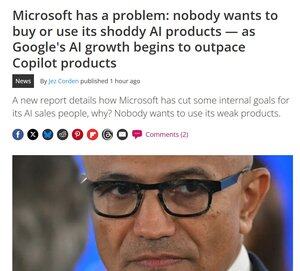 A estratégia de IA da Microsoft está a falhar, uma vez que os objetivos de vendas internos estão a ser cortados e a procura pelo Copilot continua fraca, enquanto o Google Gemini ganha rapidamente quota de mercado e supera o ChatGPT em benchmarks chave.