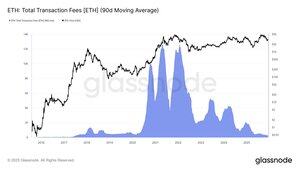 Desde o início de novembro, as Taxas Totais Pagas por Dia na Ethereum (90D-SMA) caíram abaixo de 300 ETH/dia, o nível mais baixo registado desde julho de 2017. 📊