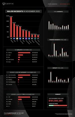 Combinando todos os incidentes de Novembro, confirmámos que ~$127M foram perdidos devido a explorações, hacks e fraudes, após ~$45M terem sido congelados ou devolvidos.