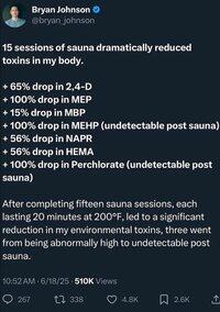 Eu mesmo reduzi minha carga de toxinas plasmáticas de 8/10 (altamente tóxico) para 0/10 (indetectável) em 1 ano de sauna diária de 40min-1h