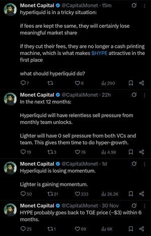 Todos os dias eu deixo cair uma lágrima pensando no fato de que Jeff deu uma de suas entrevistas trimestrais de podcast a um ninguém chamado MonetCapital, que agora tweeta exclusivamente sobre como Lighter é o fim da Hyperliquid