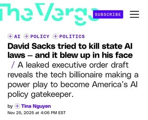 Несколько дней назад царь ИИ @DavidSacks попытался стать де-факто диктатором американской политики в области ИИ, чтобы защитить своих друзей из венчурного капитала в Силиконовой долине от постоянно растущего общественного скептицизма по поводу ИИ.