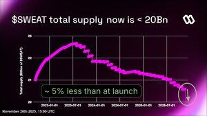 Это приводит к тому, что общее количество $SWEAT, сожженного с момента запуска, превышает 3,6 миллиарда, и приводит к снижению общего предложения на 5% до менее 20 миллиардов.