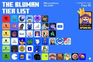 Bluman Tier-listan är en daglig redaktionell lista över projekt som formar ansiktet på Base-ekosystemet. Vi spårar vem som faktiskt skapar värde, inspirerar communityn och gör blockkedjan ljusare – inte bara genom teknik, utan genom nöje, memes och kulturell påverkan.