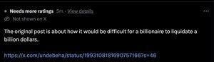 Питання не в тому, чи важко ліквідувати мільярд доларів, а в тому, чи означає «мільярдер» у вас мільйон доларів ліквідного капіталу, чи ваш чистий капітал перевищує мільярд доларів