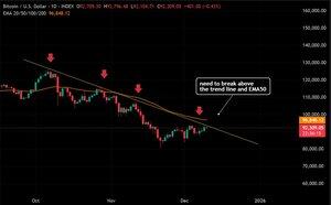 比特币正逼近下行趋势和50日EMA 这是几个月以来的拒绝区 如果多头想要重新获得动能,真的需要加把劲 突破这条趋势线,结构将发生变化 如果失败,磨蹭将继续。 由于今天有FOMC会议,我们可能会看到两边的波动性。 密切关注。