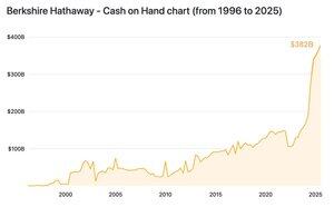 伯克希尔和巴菲特手上有 3820 亿美元现金(在过去 18 个月中增加了约一半)。以下是他们可以随意投资的公司,这些公司的市值大致在这个范围内: 4110 亿美元(ASML) 4040 亿美元(好市多) 3830 亿美元(家得宝) 3550 亿美元(LVMH) 2610 亿美元(摩根士丹利) 2600 亿美元(爱马仕) 20 亿美元(温迪汉堡)