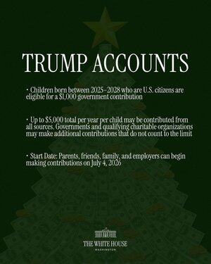 唐纳德·J·特朗普总统正在确保每个年轻的美国家庭都能分享美国的成功——通过 TRUMP ACCOUNTS 赋能下一代。🇺🇸