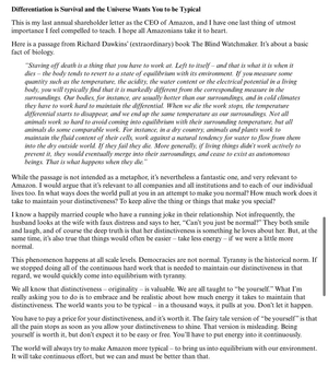 差异化是生存,宇宙希望你变得典型 作者:杰夫·贝索斯 他作为首席执行官的最后一封信。