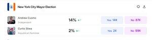 Cuomo在Poly上为9美分,在Kalshi上为14美分。你很少在没有限制的网站上看到这种大套利。
