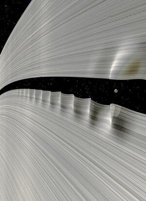 令人惊叹 😲😲😲 微小的月球 '达夫尼斯' 在土星的光环中制造巨大的波浪。🪐