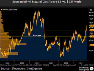 天然气会在2026年涨到6美元,还是回落到2.50美元? 在12月5日,前期天然气期货价格约为每MMBTU 5.40美元,如果过去的模式继续存在,面临向下回归的高风险。或者,这种高度弹性的商品是否终于克服了美国的过剩供应机器,尽管全球变暖趋势,寒冷的冬季依然持续。我的偏向是回归。 完整报告请见彭博社: {BI COMD} #naturalgas #energy @BBGIntelligence