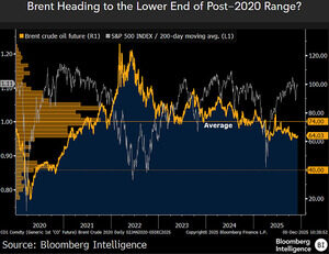 布伦特原油 $40-$74,天然气 $2.5-$6 在 2026 年?分布 - 布伦特原油在每桶约 $74 面临阻力墙,并倾向于熊市的 $40。自 2020 年以来我对价格分布的分析突显了原油的下行趋势与能源股票的上升以及天然气的变数。冬天像狮子一样来临可能会将天然气推向每百万 BTU $6 -- $2.50 是正常的回归水平。 完整报告请见彭博社: {BI COMD} #crudeoil #naturalgas #energy @BBGIntelligence
