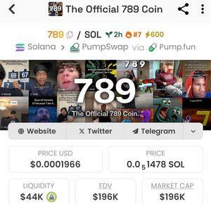 (🔥SOL) #789, good narration like $67, while $789 (7 ate 9) is the OG number meme, a team behind it, we push from 160k ——> 220K,sit 190k now, check, 叙事还可以,🟡🟢🔥,广告。
