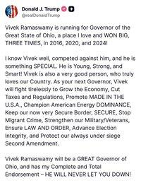 维韦克·拉马斯瓦米将成为俄亥俄州的伟大州长,与来自全州88个县的俄亥俄人合作。 谢谢你,总统特朗普 🇺🇸
