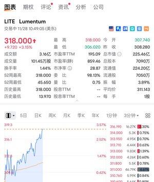 有个跟lite一样行业做光模块的: $COHR 市值一样,营收是lite三倍,盈利能力也远强于lite.