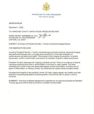 卡罗琳·利维特表示,特朗普总统的MRI是以预防的方式进行的,重点关注心血管和腹部成像。