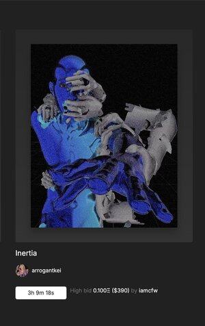 《慣性》由 @arrogantkei 創作 屬於 Wake Up Call 精選系列 目前出價:0.1Ξ 由 @iamcfw 提供 拍賣在 3 小時後結束 在 @SuperRare 探索完整的策展 - 連結在個人檔案中。