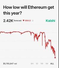 最新消息:$ETH 現在預測今年將跌至 $2,420,根據 Kalshi 上最近的交易價格。