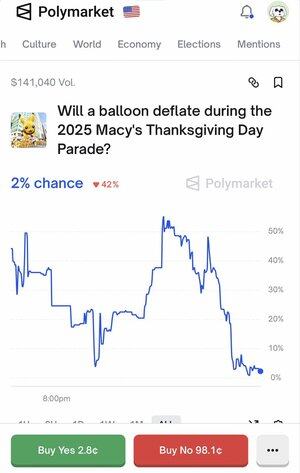 我做了研究。 不過,這裡最大的問題是氣球必須看起來「變形」或因為漏氣而被拿出遊行。 這些事件中沒有發生任何這種情況。 機會接近 0。 寒冷的天氣是最大的因素,明天在紐約市的氣溫將在 36 到 40 度之間。 我喜歡對於遊行中漏氣氣球的「不」。