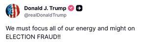 最新消息:特朗普總統表示,應全力關注選舉舞弊問題。