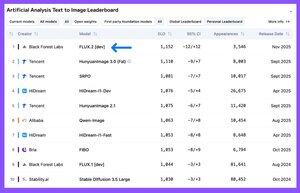 FLUX.2 [dev] 是新的領先開放權重文本到圖像模型,超越了 HunyuanImage 3.0、Qwen-Image 和 HiDream-I1-Dev,在人工分析圖像領域中名列前茅!