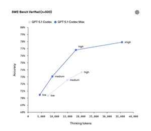 在 SWE-Bench Verified 上,它在中等推理方面的表現優於 GPT-5.1-Codex,並且使用的思考令牌少了約 30%。